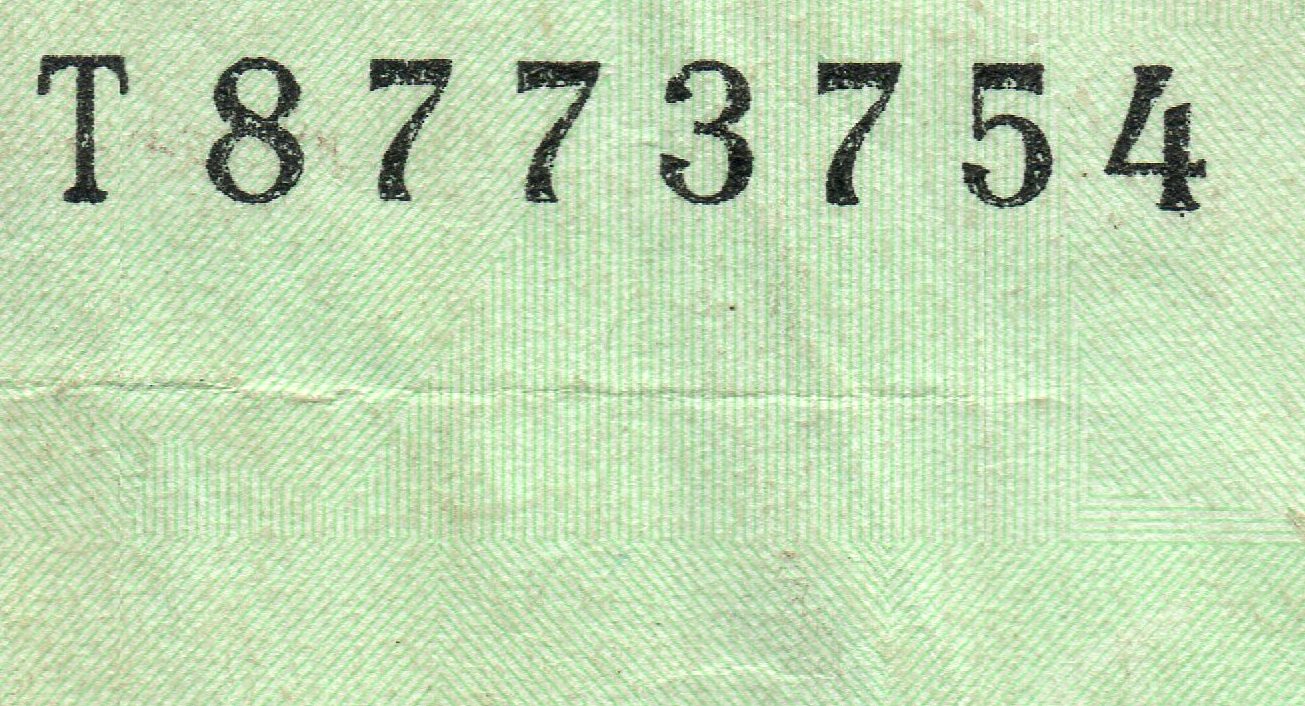Серійний номер знаходиться у лівому нижньому куті фарбою червоного кольору та в правому верхньому куті фарбою чорного кольору.