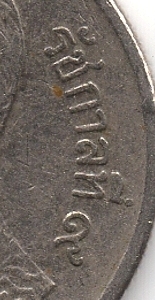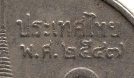 У верхній частині, зі зміщенням праворуч, розміщено напис «ประเทศไทย» (ТАЇЛАНД), а нижче рік карбування монети – «พ.ศ. ๒๕๔๗» (В.Е. 2547 – буддійський календар, 2004 – за Григоріанським календарем) (рис. 6).