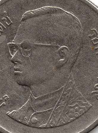 З обох сторін зображення короля пояснювальний напис: ліворуч – «ภูมิพลอดุลยเดช» (ПУМІПОН АДУЛЬЯДЕТ) (рис. 3), праворуч – «รัชกาลที่ ๙» (КОРОЛЬ РАМА IX) (рис. 4).