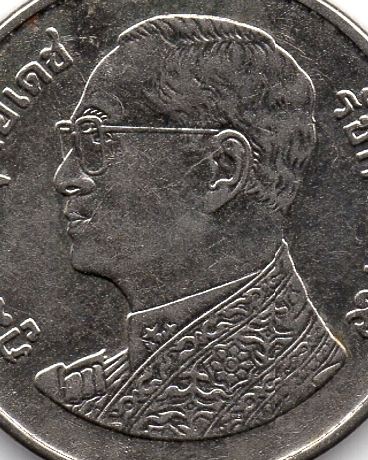 На лицевій стороні монети посередині зображено 2-й портрет короля Таїланду 1946-2016 років Пуміпона Адульядета (Рами ІХ) в ліву сторону (рис. 2).