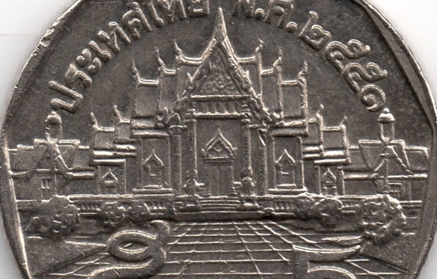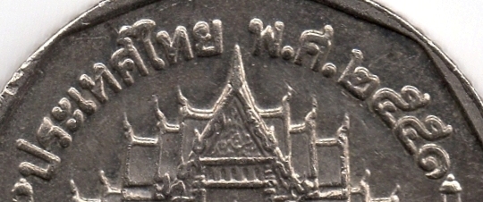 У верхній частині монети розміщено напис «ประเทศไทย» (ТАЇЛАНД), і рік карбування монети – «พ.ศ. ๒๕๕๑» (В.Е. 2551 – буддійський календар, 2008 – за Григоріанським календарем) (рис. 7).